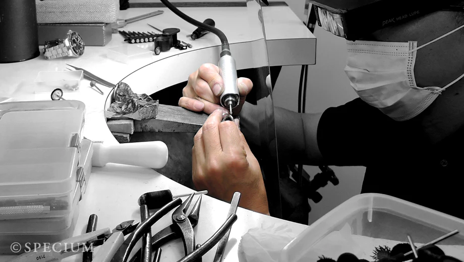 時計を愛しているからこそ、丹誠込めて仕上げる。 積み重ねた経験からくる高い技術が、納得のゆく仕上げにつながる。